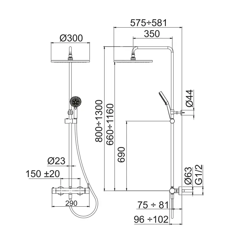 NOKEN TEC ROUND THERMOSTATIC Душевая стойка термостатическая, душ 300 мм, хром
