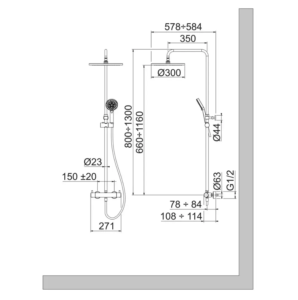 NOKEN TEC ROUND THERMOSTATIC Душевая стойка термостатическая, душ 300 мм, хром