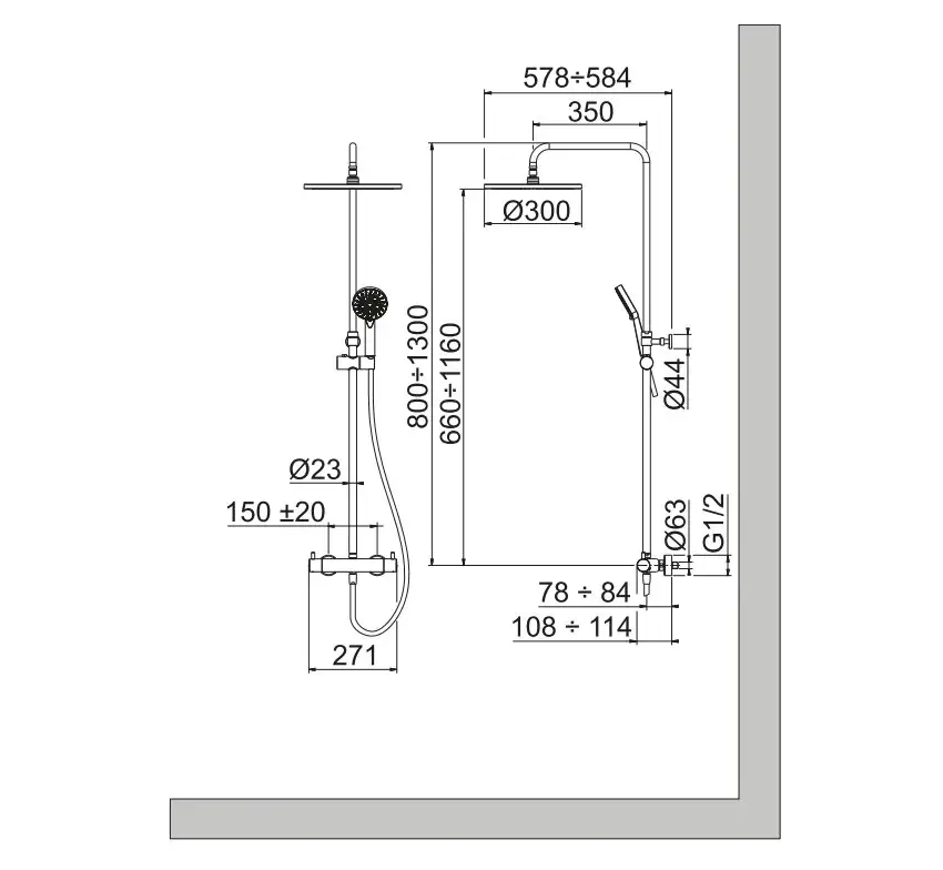NOKEN TEC ROUND THERMOSTATIC Душевая стойка термостатическая, душ 300 мм, хром
