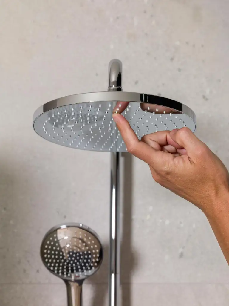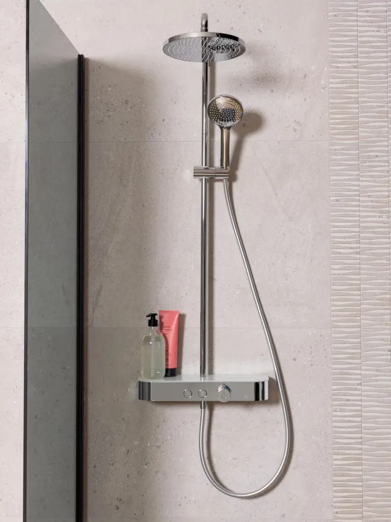 NOKEN TOUCH&FEEL ROUND Душевая стойка с термостатом, р/душ 11 и верхний душ 8,25 л/мин, хром