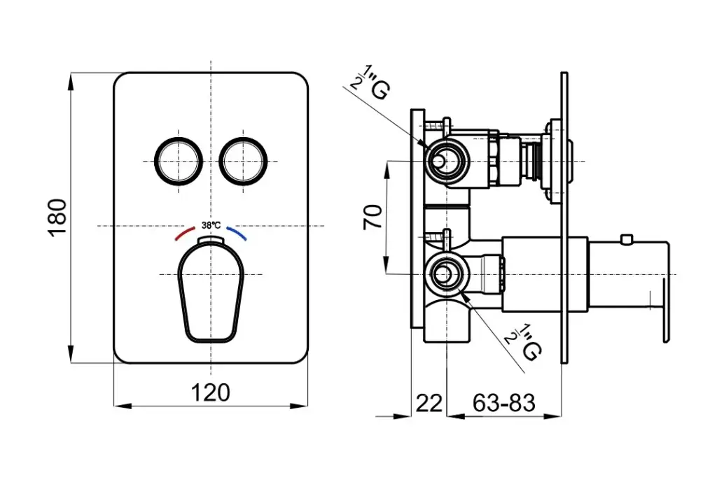 NOKEN TOUCH&FEEL Термостатический смеситель на 2 выхода Project Line, черный