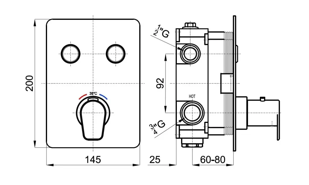 NOKEN TOUCH&FEEL Термостатический смеситель на 2 выхода SmartBox, хром