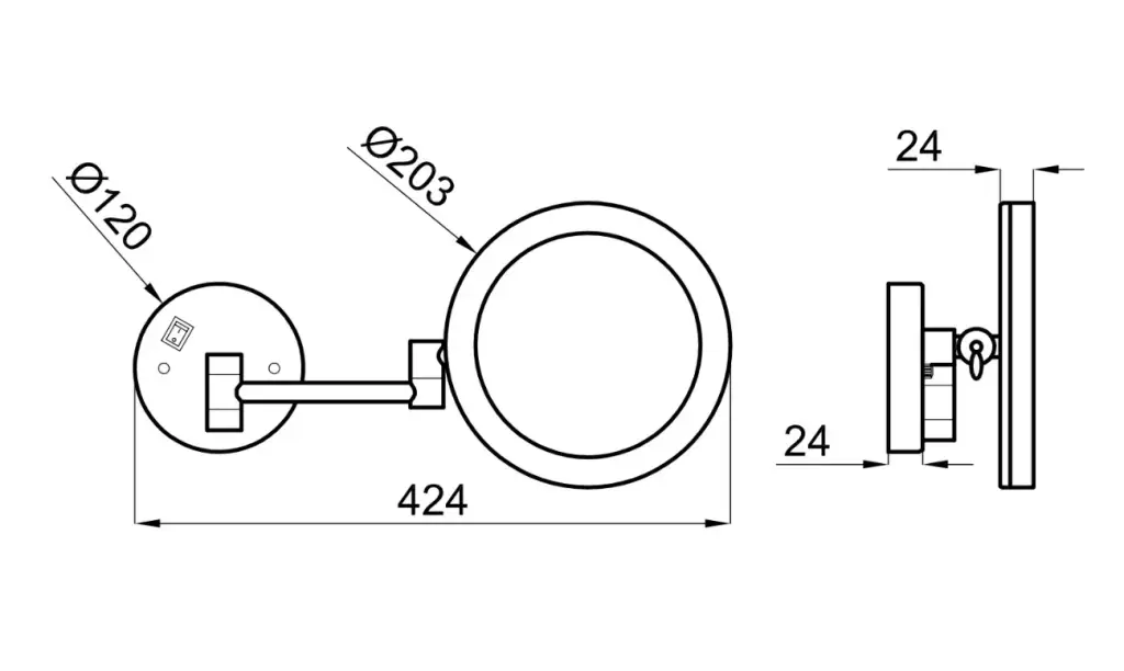 NOKEN Увеличительное зеркало, закрепляемое на стене на 2 шарнирах со светодиодной подсветкой