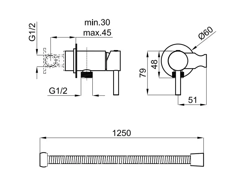NOKEN Внешняя часть смесителя для гигиенического душа, шланг 125 см, 8,6 л/мин, браш. золото