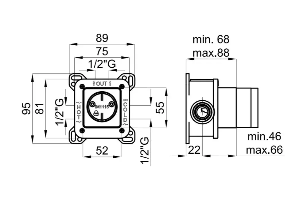 NOKEN Внутренняя часть смесителя для душа Ø35 мм, 1/2"