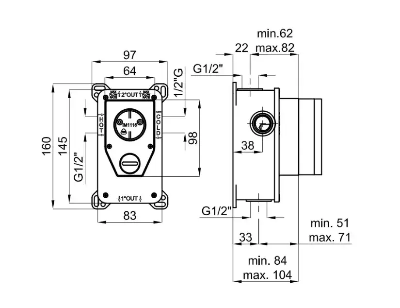 NOKEN Внутренняя часть смесителя для ванны/душа Ø35 мм, 1/2"