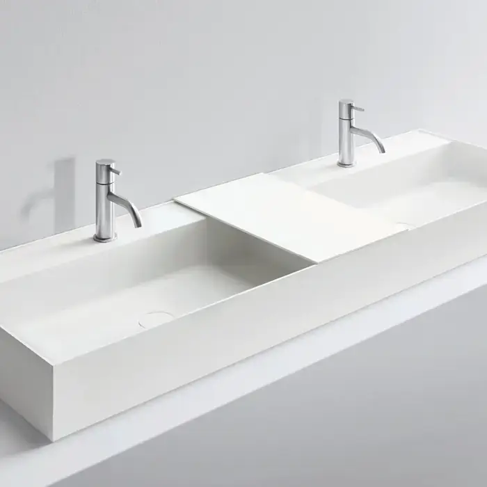 MILLDUE Раковина MAN 126 накладная из CRISTALPLANT ,126,5х47,2 см, с 2 отв для смесителя, цвет белый матовый
