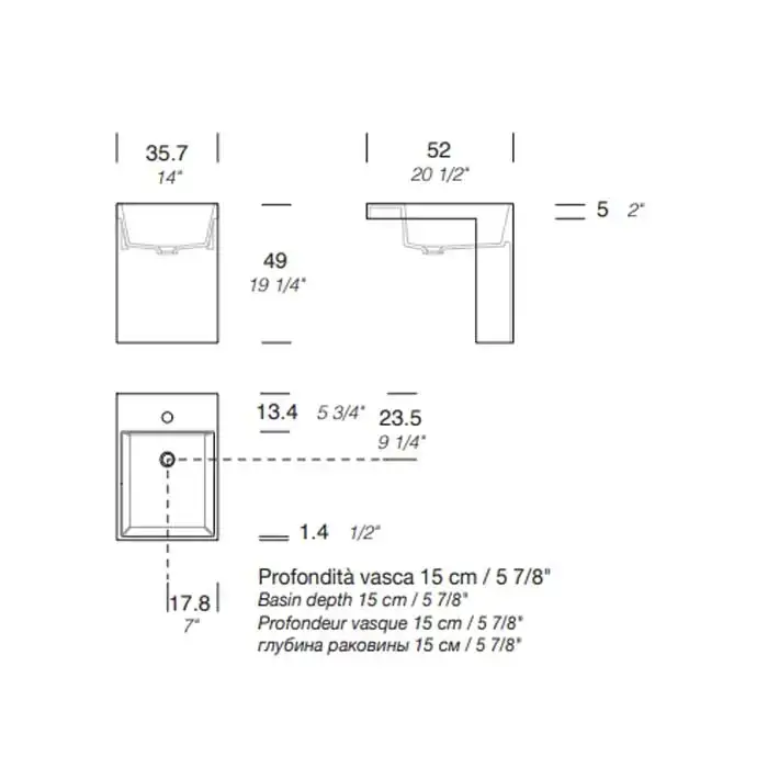 NOORTH milldue edition Раковина 35.7х52х49 см, 1 отв., полувстраиваемая, цвет: белый