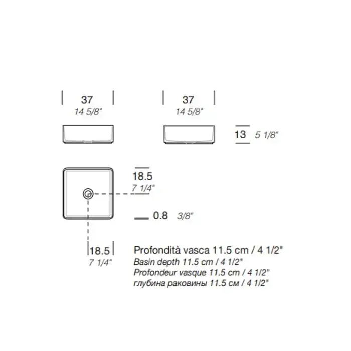 NOORTH milldue edition Раковина 37х37х13 см, без отв., накладная, цвет: белый