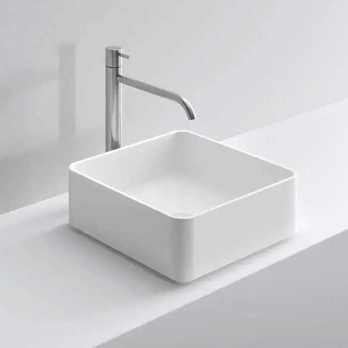 MILLDUE Раковина BASIC Q37 накладная из CERAMILUX ,37х37х13 см, без отв для смесителя, цвет белый матовый