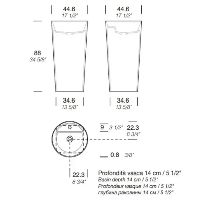 MILLDUE Раковина AZUMA 88 напольная из CRISTALPLANT ,D 44,6 см H 88 см,слив в пол, 1 отв для смесителя, цвет белый матовый