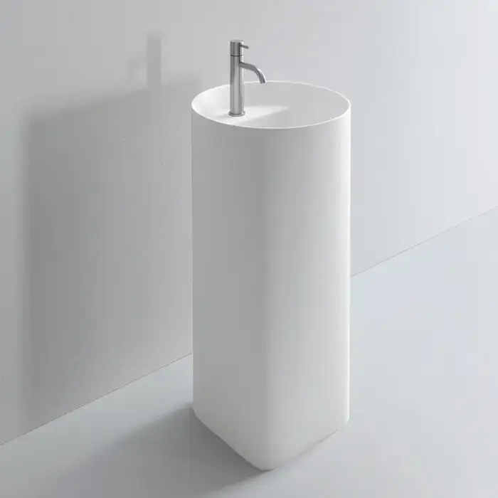 MILLDUE Раковина AZUMA 88 напольная из CRISTALPLANT ,D 44,6 см H 88 см,слив в стену, 1 отв для смесителя, цвет белый матовый