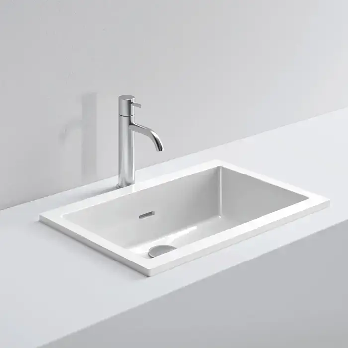 MILLDUE Раковина NET 54.37, встраиваемая сверху, из CERAMILUX ,57х37х0,8 см, без отв для смесителя, цвет белый матовый