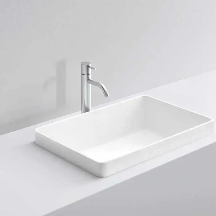 MILLDUE Раковина BASIC R58 встраиваемая сверху из CERAMILUX ,58х37х4,5 см, без отв для смесителя, цвет белый матовый