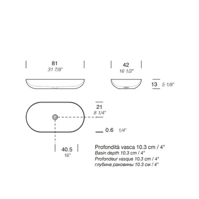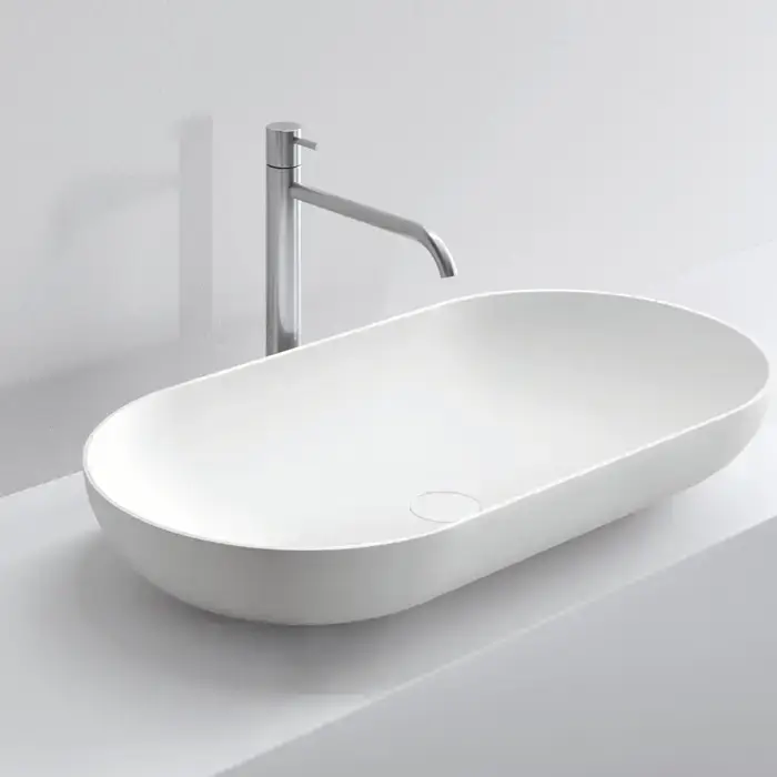 NOORTH milldue edition BLEND Раковина накладная 81х42хh13 см, из CRISTALPLANT, без отв для сме, без перелива, с донным клапаном, цвет белый матовый