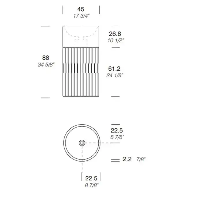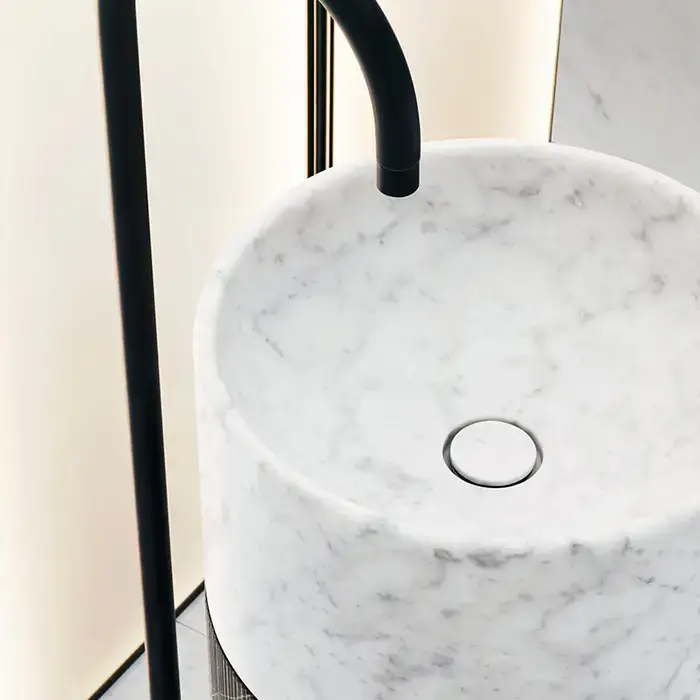 NOORTH milldue edition ROMA III Раковина напольная Ø450x880 мм., слив в пол, c донным клапан, корпус фрезерованный Grafite, раковина Bianco Carrara