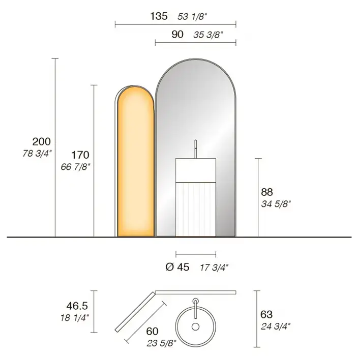 NOORTH milldue edition ROMA Зеркало напольное 150(90+60)x4x200/170 см., правое, с поворотной створкой, с подсветкой, рама черный металл