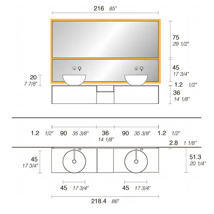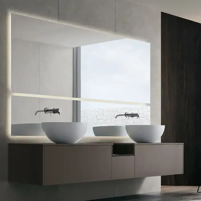 NOORTH milldue edition нест! Зеркало VETRA 216хh45см с 4-х сторонней светодиодной подсветкой, с отв. д/2-х смесителей