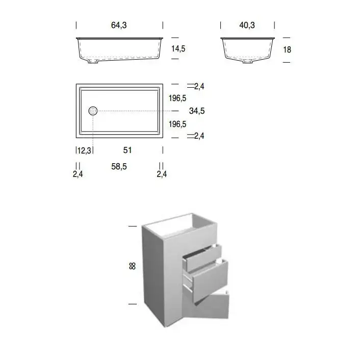 NOORTH milldue edition TOUCH Комплект мебели 41х40х88см, напольный, 3 ящика, слив в пол, раковина Milltek, цвет: Argilla матовый