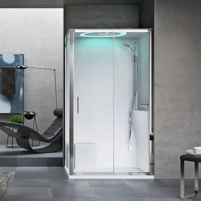 Novellini Eon A Душевая кабина 100х80х236.5cм., Dx, турец баня, термостатический смеситель, гидромассаж, верхний душ, подсв, цвет: хром/белый
