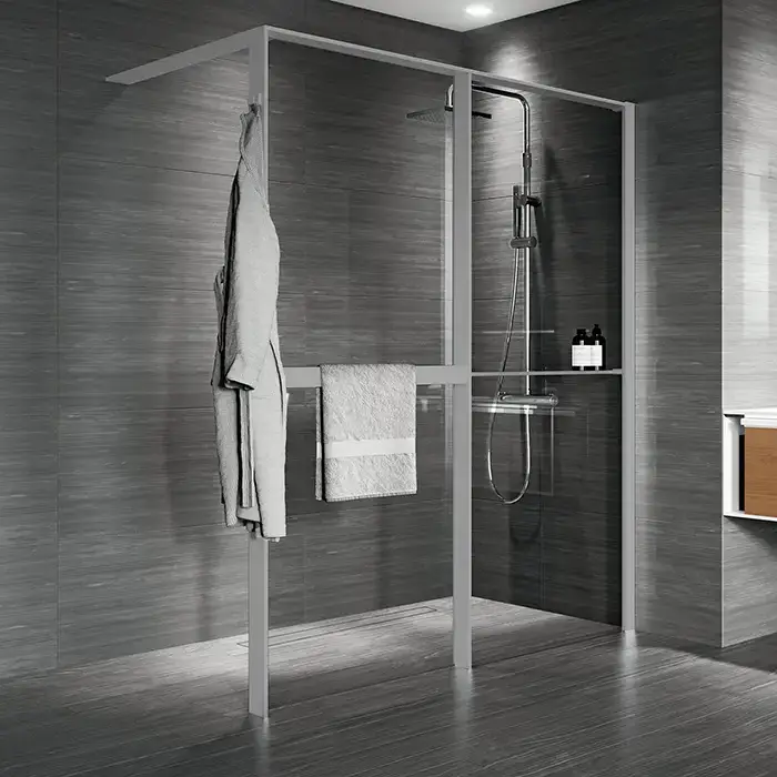 NOVELLINI KUADRA HWZ2 Душевое ограждение 1740-1770х2000 мм., с свободным входом, правое, с полотенцедержателем и полкой, стекло прозрачн, проф Silver