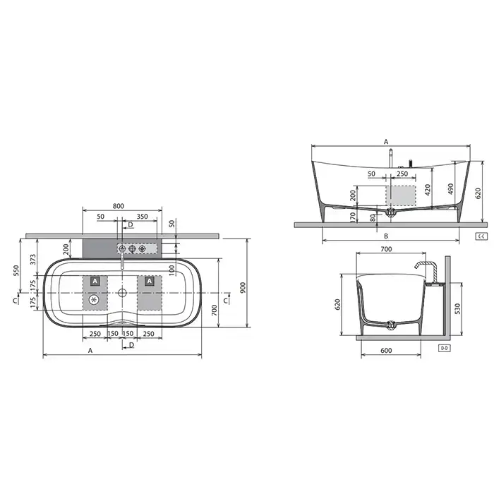 NOVELLINI SHIP Ванна отдельностоящая 1500х700х620 мм., с донным клапаном click-clack, NOVOTECH, цвет белый матовый