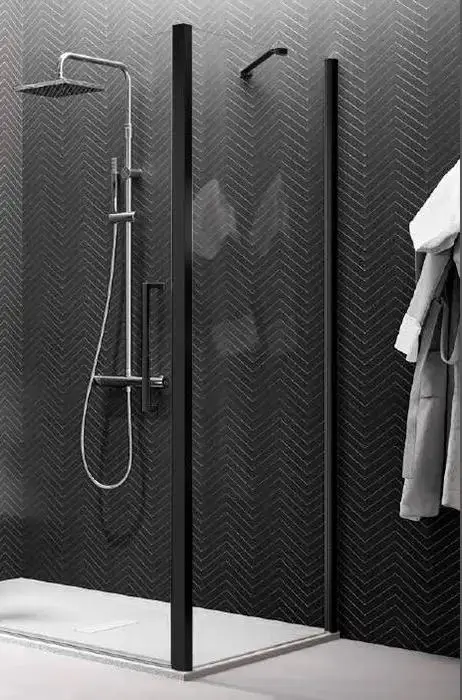 NOVELLINI YOUNG Боковая стенка 790-810х2000 мм., для установки с дверью, профиль черный матовый, стекло прозрачное