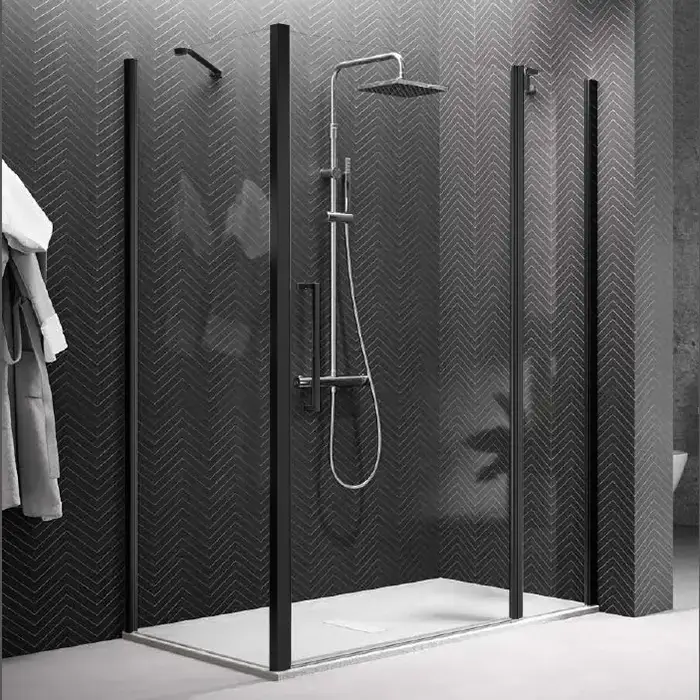 NOVELLINI YOUNG Дверь для душа с неподвижным сегментом 970-1010х2000 мм., распашная, одностворчатая, реверсивная, профиль черный матов, стекло прозрач