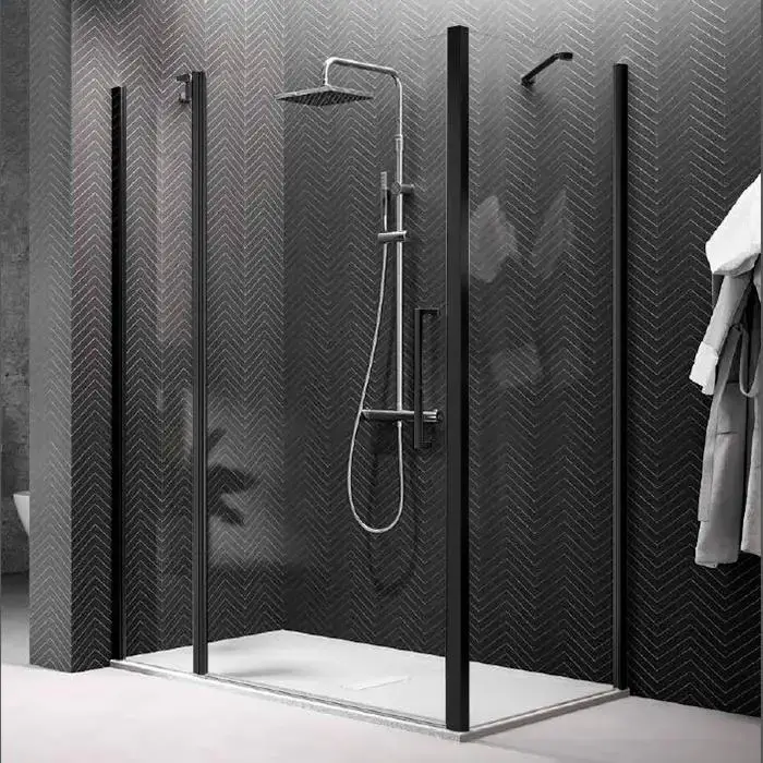 NOVELLINI YOUNG Дверь для душа с неподвижным сегментом 1170-1210х2000 мм., распашная, одностворчатая, реверсивная, профиль черный мат, стекло прозрачн