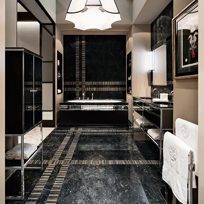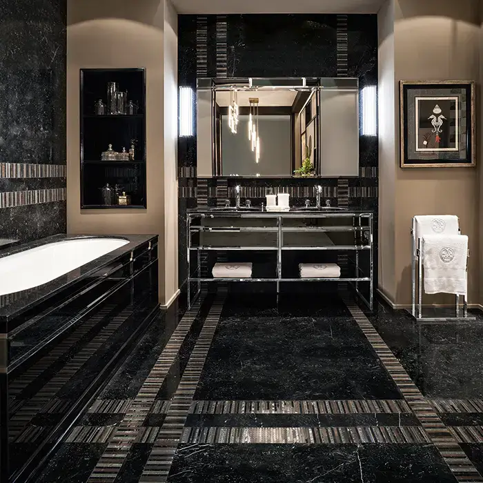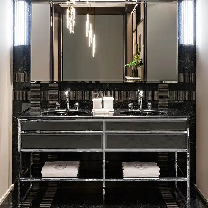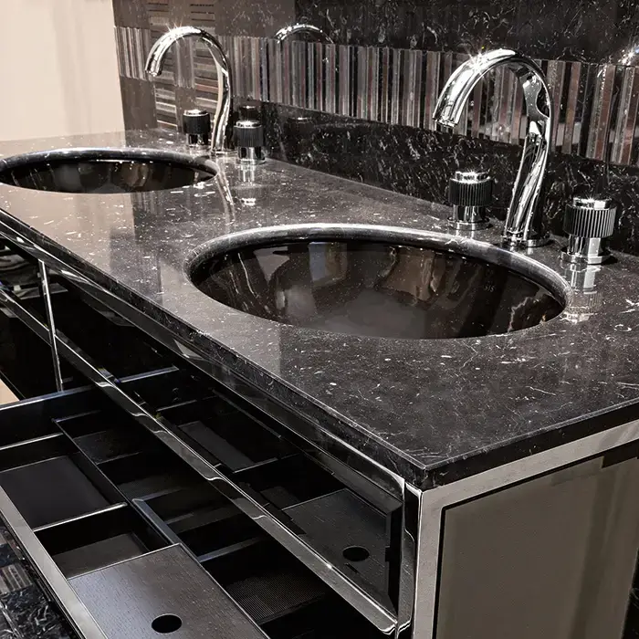 OASIS ACADEMY Столешница мраморная 1600х530х20 мм., с 2 отверстиями для раковин, с 3 отверстиями для смесителей, мрамор Nero Marquinia