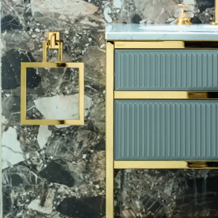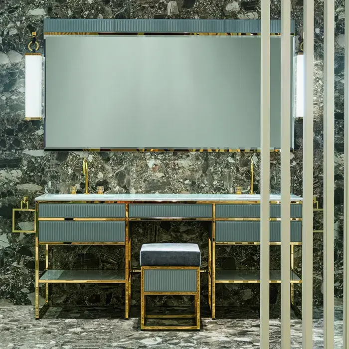 OASIS ACADEMY Зеркало 1900х1000х20 мм., фурнитура золото, отделка Ribbed Glass Cemento глянцевый