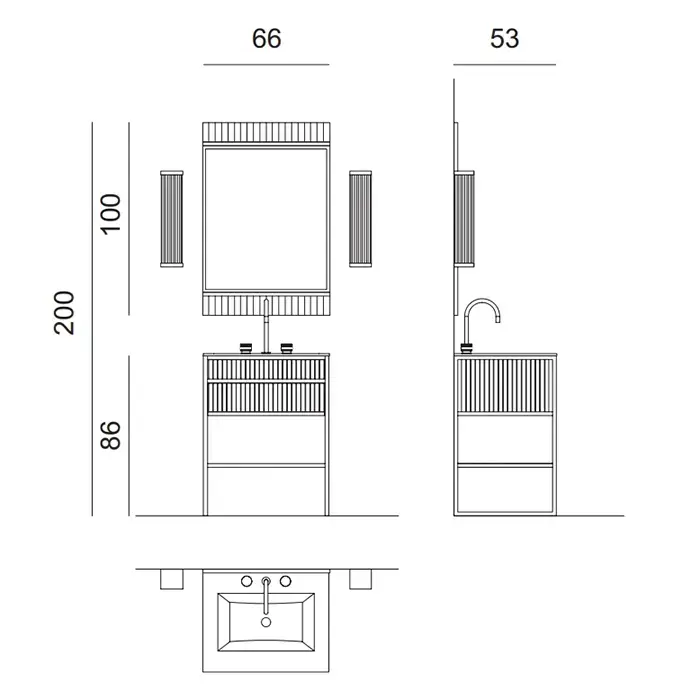 OASIS ACADEMY Консоль под раковину 660х530х840 мм., напольная, 1 ящик, 1 полка, структура хром, отделка Ribbed Bianco глянцевый