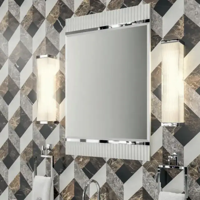 OASIS ACADEMY Зеркало 660х1000х20 мм., фурнитура хром, отделка Ribbed Bianco глянцевый