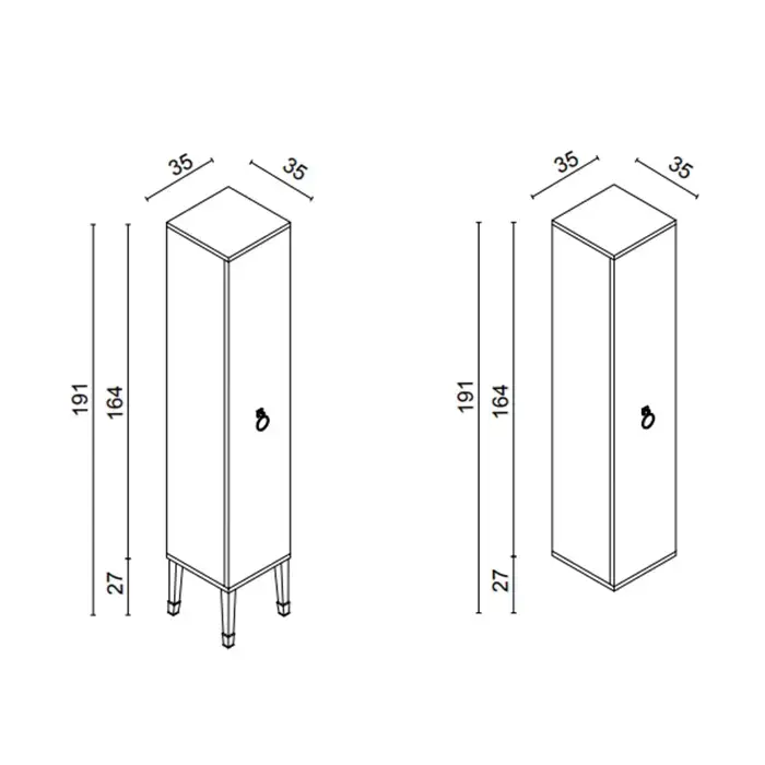 Oasis Lutetia Колонна 35х35х164см., подвесная, левая, 1 дверца, фурнитура хром, цвет: Avio глянцевый