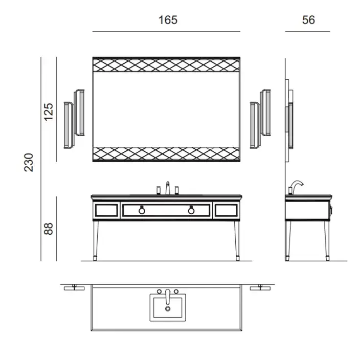 OASIS LUTETIA Консоль под раковину 1650х560х860 мм., напольная, 3 ящика, фурнитура хром, цвет Avio глянцевый