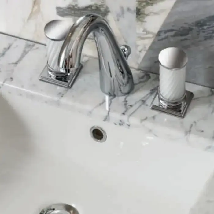 OASIS LUTETIA Столешница мраморная 1650х560х20 мм., с 1 отверстием для раковины, с 3 отверстиями для смесителя, мрамор Bianco Statuario