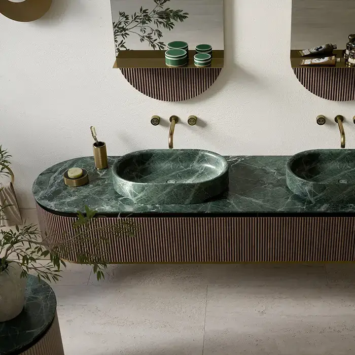 Oasis Naos / Топ мраморный загругленный с отверстием¶для 2 раковин L 236 D 56 H 2см цвет Verde Alp