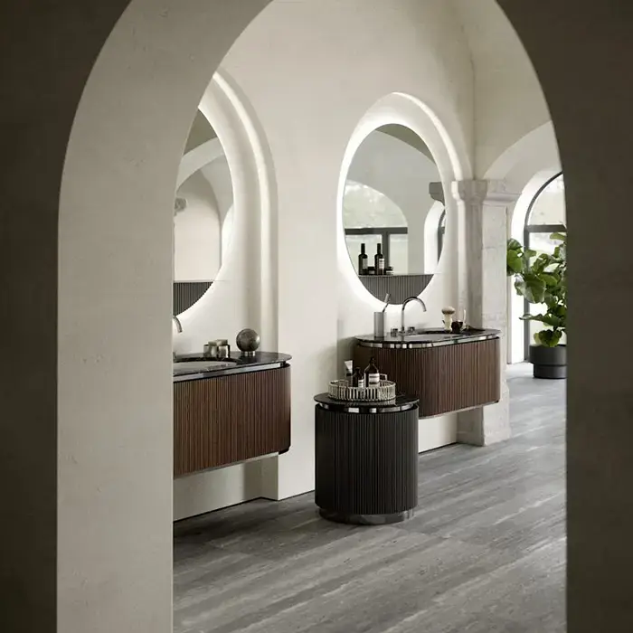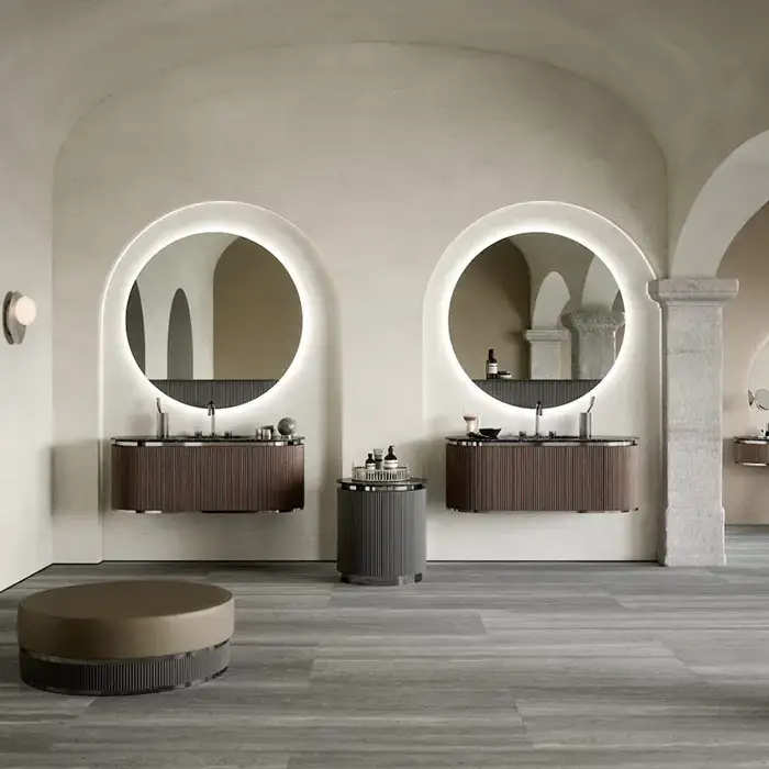 Oasis Naos Тумба под раковину L 70 D 56 H 45см, LED подсветка ящиков, цвет орех трубчатый/хром