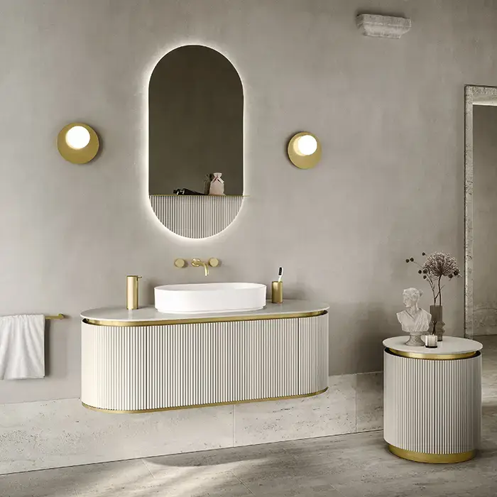 Oasis ARKO oval Зеркало 1100x560 мм, с полкой и круговой LED подсветкой, без выкл. цвет: Corda elegance M52 фурнитура: латунь