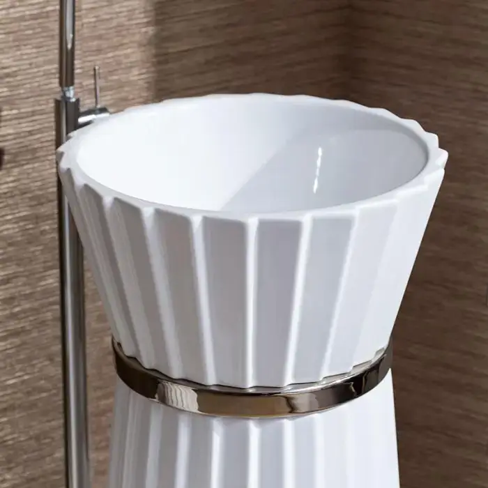 Oasis Plisse Раковина напольная Ø44х95см, без отв., без перелива, в комплекте с донным клапаном, цвет белый/хром