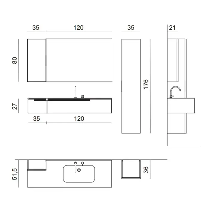 OASIS PROFILO Тумба под раковину 1200х510х270 мм, подвесная, 1 ящик правый, цвет Mint глянцевый