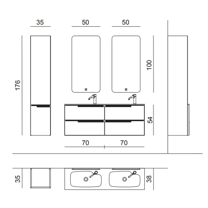 OASIS PROFILO Тумба под раковину 700х380х540 мм, подвесная, 2 ящика правых, цвет Bianco матовый
