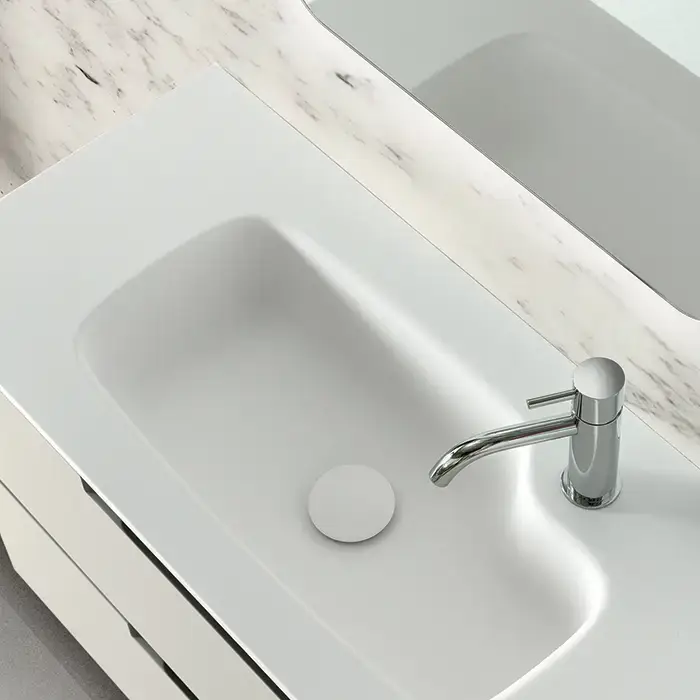 OASIS Столешница 1400х380х12 мм., с 2 интегрированными раковинами Tray, с 2 отверстиями для смесителей, без перелива, Purefeel, цвет белый матовый
