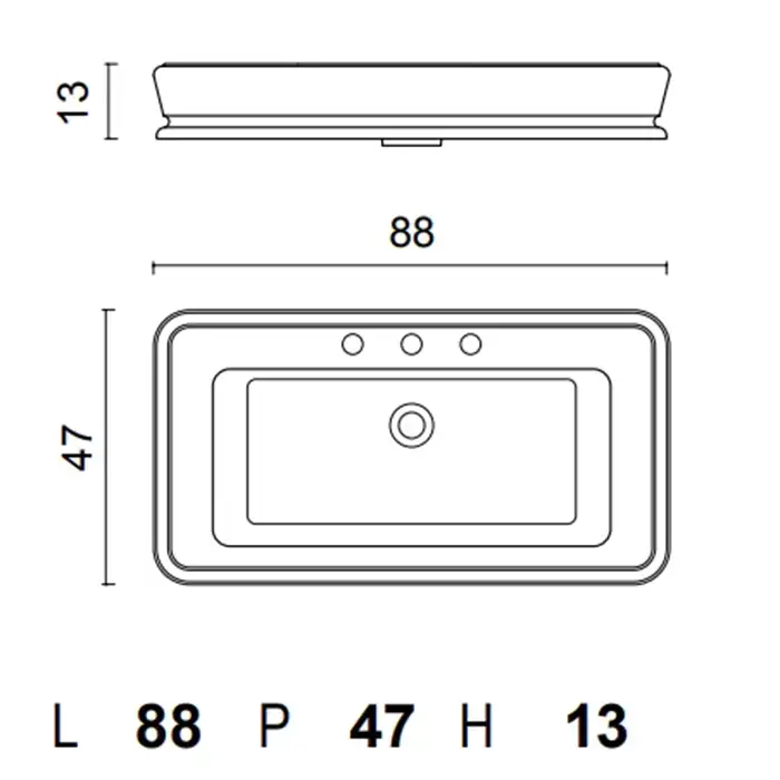 OASIS Lutetia Раковина накладная (88х47хH13см) на 3 отверстия под смеситель, в комплекте: слив, материал: минеральное литье, цвет: белый