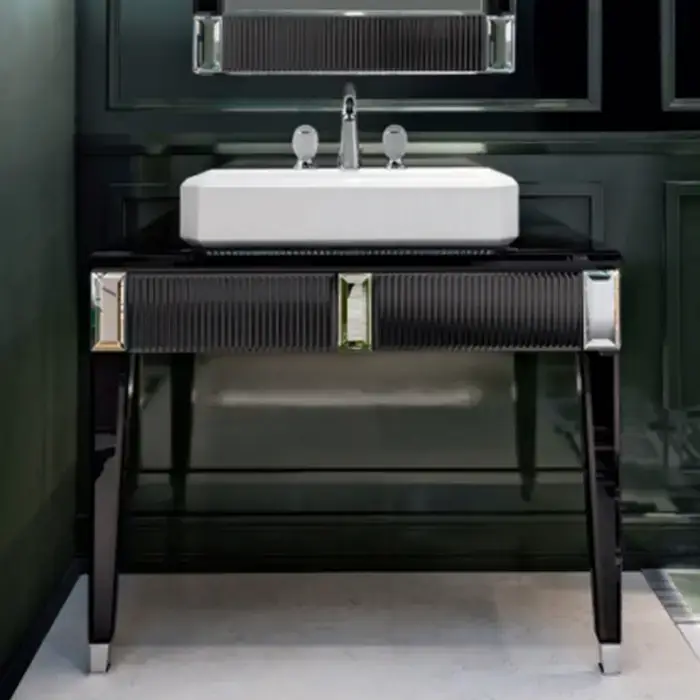 OASIS RIALTO Консоль под раковину 980х510х800 мм., напольная, 1 ящик, столешница, фурнитура хром, цвет Black глянцевый