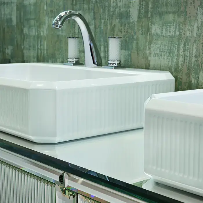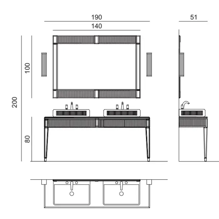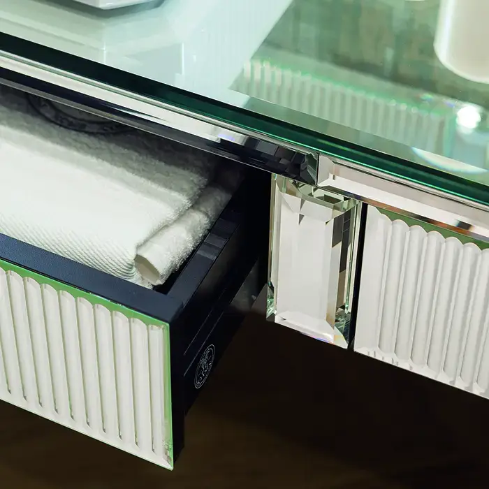 OASIS RIALTO Консоль под 2 раковины 1900х510х800 мм., напольная, 2 ящика, столешница зеркало, фурнитура хром, отделка Ribbed mirror