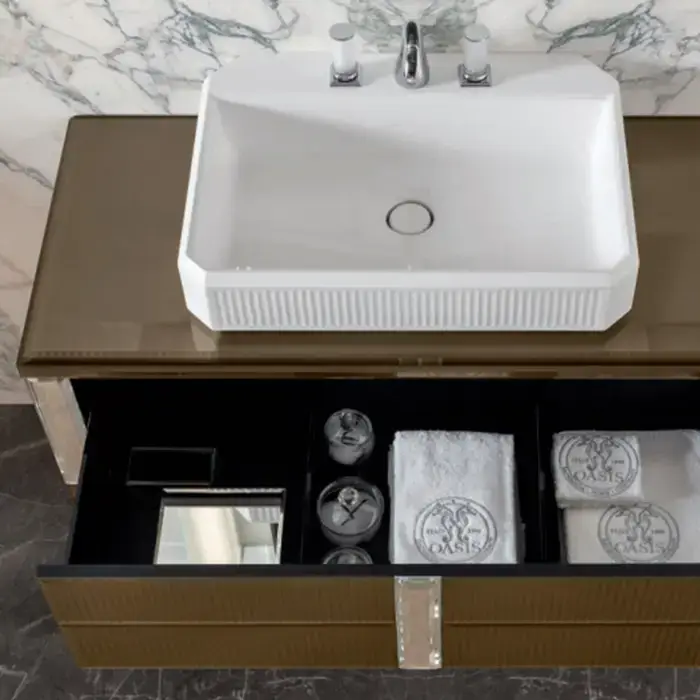 OASIS RIALTO Консоль под раковину 1160х510х800 мм., напольная, 1 ящик, столешница, фурнитура хром, цвет Gianduia металлик