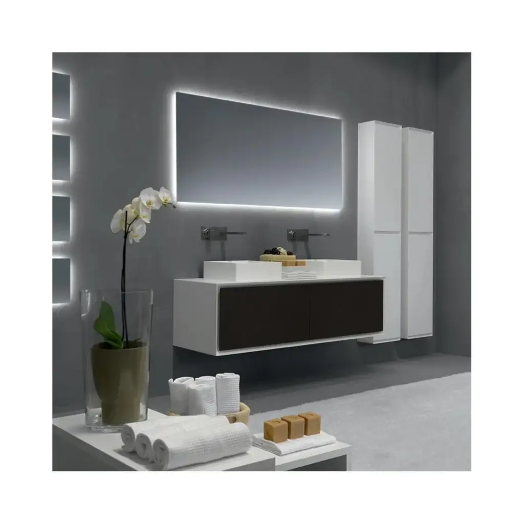 Пенал навесной, 2 дверцы, 4 стеклянных полки, dx, 27*18*h185, корпус - rosa antico lucido 037 / фасад - шпон ореха, кат.К5