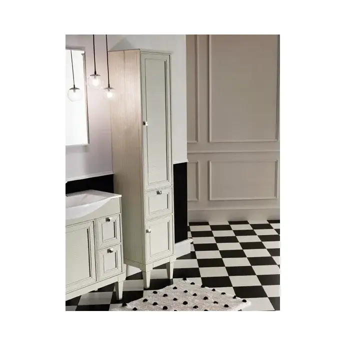Пенал с ножками, 2 дверки, 1 ящик, 35*38.5*193.2, дерево, окрашеное в матовый лак col. creta, ручки - P02 хром