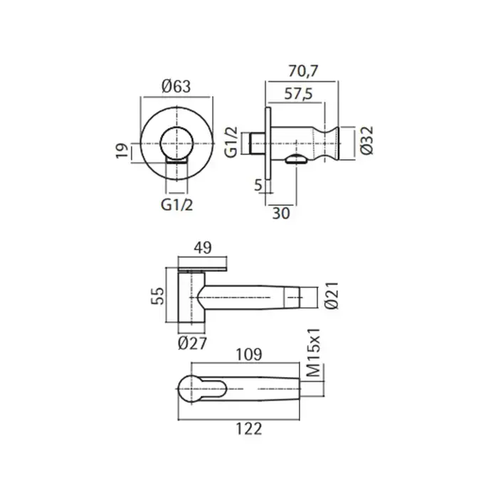 QuadroDesign Source Гигиенический душ, настенный, с запорным вентилем, цвет: brushed stainless steel